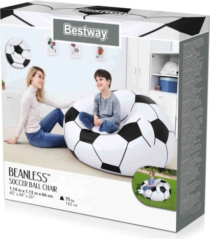 Bucurați-vă de confort și stil cu acest fotoliu gonflabil unic care combină funcționalitatea practică cu un design modern inspirat de fotbal. Ideal pentru camera de copii sau grădină.