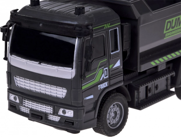 Modelul este realizat din plastic rezistent și este echipat cu șase roți cu bandă de rulare din cauciuc, profilată, pentru aderență sigură. Pentru o punere în funcțiune ușoară este suficient să introduci bateriile (nu sunt incluse) și distracția poate începe. Această basculantă RC pentru copii sprijină dezvoltarea motricității fine, a coordonării mână–ochi și a capacității de concentrare.