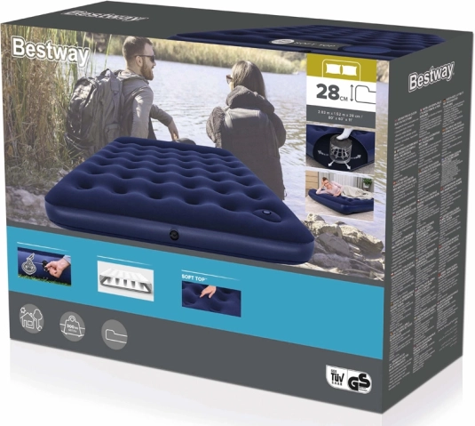 O saltea gonflabilă practică și confortabilă pentru două persoane, cu dimensiunile 203 × 152 × 28 cm, asigură un somn liniștit acasă și în călătorii. Datorită pompei de picior integrate o umflați ușor fără electricitate, construcția coil‑beam asigură stabilitatea, iar perna integrată și suprafața din vinil moale sporesc confortul. Supapa cu două sensuri facilitează umflarea rapidă și dezumflarea.