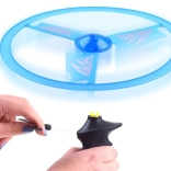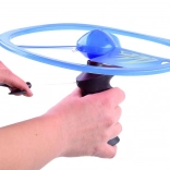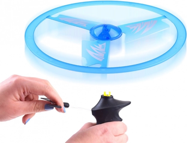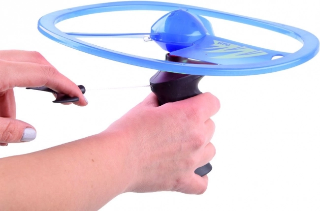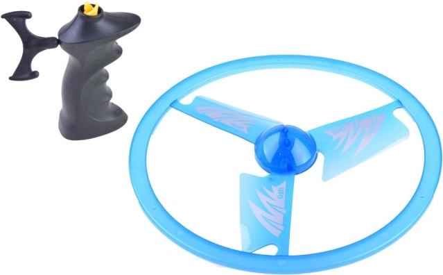 Manevrarea este simplă: așezi discul pe mâner, tragi de sfoară și privești cum elicea se înalță. Plasticul rezistent și designul aerodinamic susțin zborul stabil și utilizarea repetată.