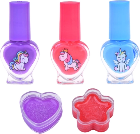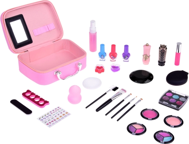 Accesorii bogate: Etuiul poate găzdui diverse produse cosmetice, precum farduri de pleoape, luciuri de buze, lacuri de unghii, pensule și aplicatoare. Toate produsele sunt sigure pentru copii și ușor de spălat.
