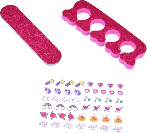 Accesorii suplimentare: Setul include și accesorii pentru a îmbogăți jocul, precum oglindă, pieptene, autocolante pentru unghii și separatoare.