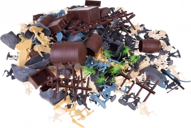Numărul mare de elemente din set permite crearea de planuri strategice, dezvoltă creativitatea și gândirea strategică. Figurinele sunt realizate din plastic în culori militare.