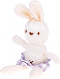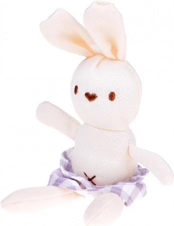 Jucăria moale, iepurașul cu aceeași fustiță, încurajează îngrijirea blândă și jocul social.