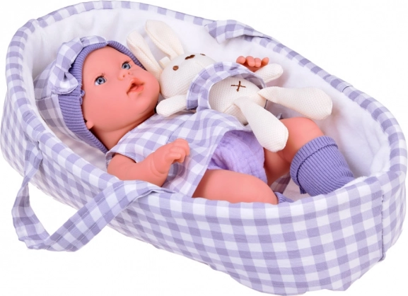Această păpușă-bebeluș lucrată cu atenție la detalii susține joaca creativă, dezvoltarea imaginației și a abilităților empatice. Trăsăturile fine ale feței și proporțiile realiste amplifică senzația de îngrijire a unui bebeluș adevărat. Coșul asortat, cu mânere, facilitează transportul și depozitarea păpușii acasă și în călătorii.