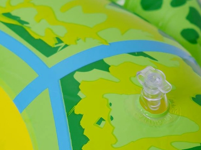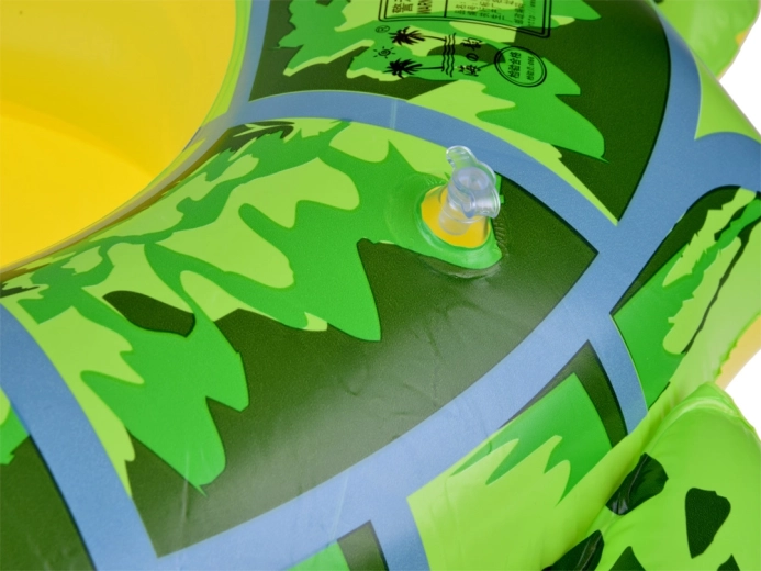 Scăunelul gonflabil drăgălaș pentru copii, în formă de broască țestoasă, cu lungimea de 90 cm, oferă ședere sigură cu două deschideri pentru piciorușe și mânere practice. Materialul rezistent PVC, forma stabilă și designul verde‑galben asigură multă distracție și încredere la primele contacte cu apa.