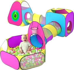 Întâmpinați un set modern de corturi care oferă nu doar distracție, ci și educație! Acest set complet este format din cinci piese întregi, care pot fi combinate pentru a crea un centru de joacă uriaș sau pot fi folosite separat, oferindu-le copiilor libertate în crearea celor mai diverse modele.