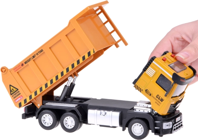 Basculantă realistă pentru micii constructori, cu efecte de lumină și sunet, caroserie metalică și mecanism pull-back (inertial). Datorită cabinei rabatabile și benei ajustabile, joaca devine și mai distractivă, dezvoltând motricitatea fină și imaginația.