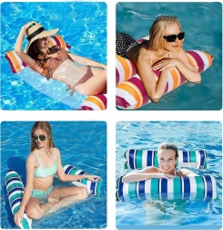 Salteaua noastră gonflabilă tip hamac pentru apă este soluția perfectă pentru toți iubitorii activităților acvatice. Datorită designului unic, permite o poziție confortabilă la suprafața apei, în timp ce rămâneți ușor scufundați, oferindu-vă o răcorire plăcută în cele mai călduroase zile. Această saltea este compactă, ceea ce o face o alegere excelentă atât pentru piscine mici, cât și pentru cele mari.