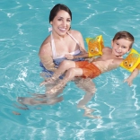 Aceste mânecuțe pentru copii, cu motiv fructat, fac mai plăcută orice bălăceală în piscină sau la mare. Designul galben intens, cu ananas zâmbitor, este ușor de văzut în apă și va fi pe placul celor mici.