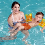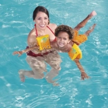 Pentru o siguranță sporită, mânecuțele sunt dotate cu 2 camere independente și valve de siguranță. PVC-ul rezistent asigură o durată lungă de viață, iar greutatea redusă și dimensiunea de 23 × 15 cm facilitează purtarea și împachetarea.