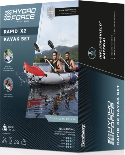 Pentru o deplasare stabilă, aveți la dispoziție aripioara centrală detașabilă, care îmbunătățește ținuta de drum și manevrabilitatea în vânt lateral. Scaunele gonflabile cu chingi ajustabile susțin spatele și mențin poziția corectă în cockpit. Pe contur găsiți mânere și coardă de siguranță pentru transport și manipulare ușoară la apă.