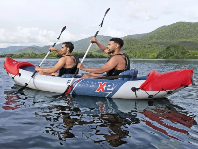 Bucurați-vă de lacuri liniștite, golfuri și râuri mai domoale într-un caiac tandem care combină o construcție din PVC solidă și durabilă (0,57 mm) cu o practicitate remarcabilă. Datorită valvelor rapide cu șurub/baoston, se umflă și se dezumflă ușor, în timp ce podeaua moale tip I‑beam asigură rigiditate și confort la vâslit.