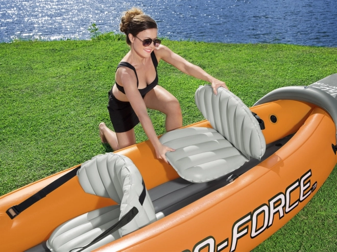 Caiacul oferă suficient spațiu pentru două persoane și este echipat cu scaune gonflabile confortabile cu spătare pentru o experiență excelentă de navigare.