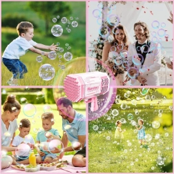 Pistola poate crea până la 40 de baloane sclipitoare simultan, bucurând atât copiii, cât și adulții.