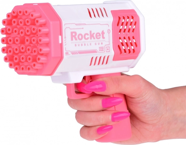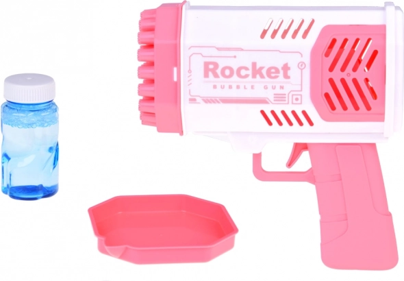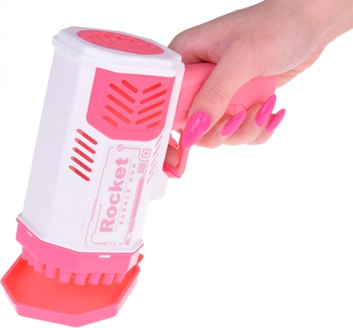 Această pistolă unică pentru baloane de săpun nu necesită niciun rezervor integrat de lichid. Cum să creați baloane superbe multicolore? Turnați o cantitate mică de lichid în recipientul roz și înmuiați în el partea din față a pistolului. Apoi, țintiți și apăsați trăgaciul. În fața dumneavoastră apare un spectacol incredibil - din cele 40 de orificii ies forme rotunde și sclipitoare, pline de culori care încântă fiecare privitor!