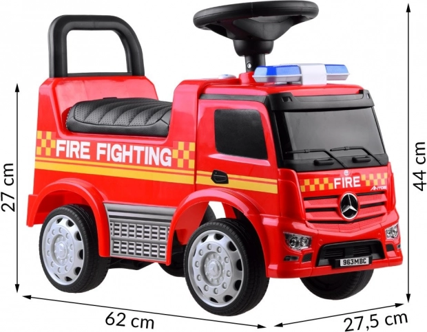 Asigurați copilului dvs. distracție și siguranță cu acest vehicul licențiat Mercedes în formă de mașină de pompieri. Fabricat din plastic de înaltă calitate, oferă o durabilitate și culori extraordinare. Datorită scaunului confortabil cu spătar, mersul este nu doar confortabil, ci și sigur. Mecanismul de blocare previne răsturnarea înapoi.