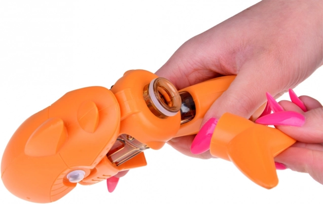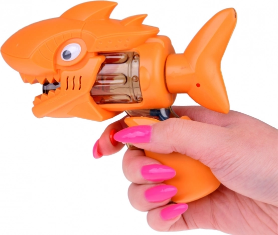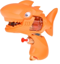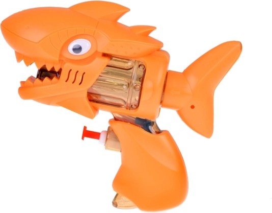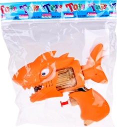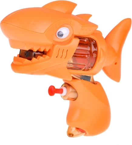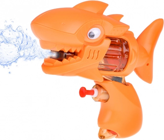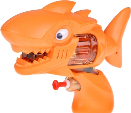 Acest pistol compact de apă în formă de rechin portocaliu este realizat din plastic neted, plăcut la atingere, și este ideal pentru distracția de vară. Copiii vor aprecia aspectul jucăuș cu înotătoare, dinți și un ochi expresiv care se leagănă vesel la mișcare. Datorită rezervorului transparent, micii stropitori au mereu o evidență a apei rămase.