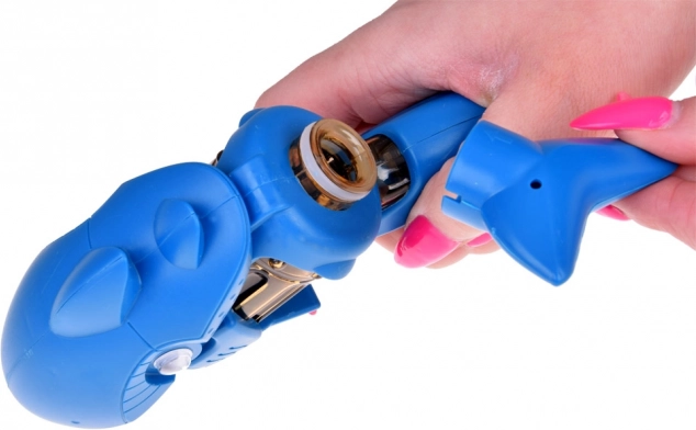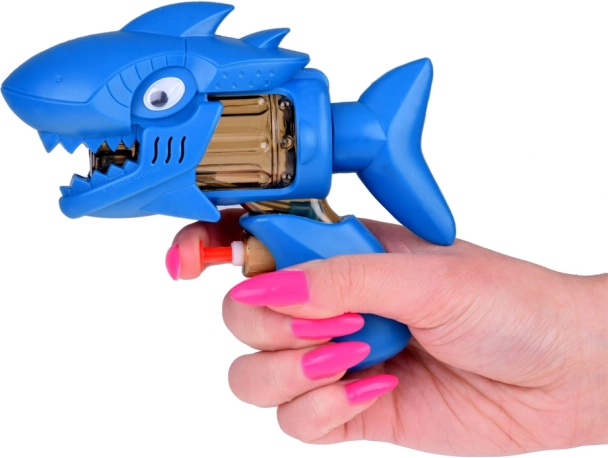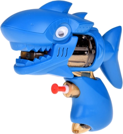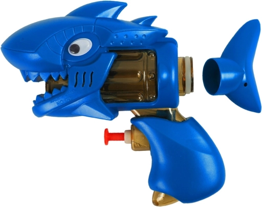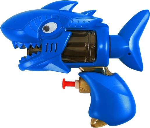 Ochii mobili și detaliile de rechin transformă pistolul într-o jucărie preferată pentru bătălii creative cu apă.