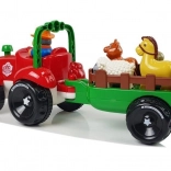 Remorca detașabilă transportă o oiță, o văcuță, un cal și un cățel – perfect pentru jocuri de poveste și învățarea despre animale.