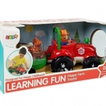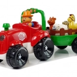Acest tractor colorat, cu remorcă detașabilă, aduce copiilor bucuria de a descoperi viața la fermă. Lumina farurilor și sunetele realiste de mers, plus claxonul, oferă autenticitate jocului. Printr-o simplă apăsare a coșului de fum, tractorul pornește înainte, în timp ce remorca duce animăluțele la destinație.