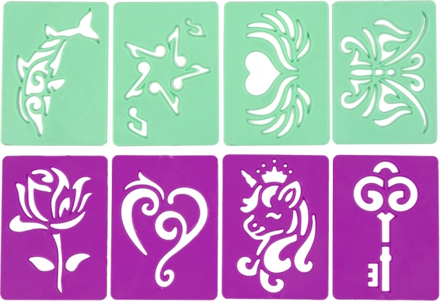 Set creativ pentru copii, care permite realizarea de tatuaje temporare colorate, ușor de spălat. Conține un stilou electronic, 6 markere sigure și 8 șabloane pentru decorarea pielii rapidă și distractivă. O alegere excelentă pentru petreceri, pentru dezvoltarea creativității, preciziei și răbdării.