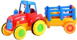 Tractorul vesel pentru copii, cu remorcă și animăluțe, îi va încânta pe toți micii fermieri. Jucăria oferă efecte luminoase și sonore, propulsie înainte și o execuție sigură și rezistentă. Setul include o remorcă cu țarc și două figurine – văcuță și căluț. Dezvoltă excelent motricitatea fină, coordonarea și imaginația copiilor de la 18 luni.