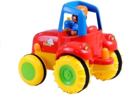 Jucăria este realizată din plastic de calitate, fiind solidă, durabilă și sigură pentru joaca de zi cu zi. Propulsia tractorului îi motivează pe copii la mișcare – învață să se târască sau să facă primii pași în timp ce „aleargă” după vehicul. Luminile și sunetele adaugă realism jocului și susțin dezvoltarea senzorială.