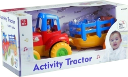 Tractorul luminează și emite sunete vesele în timpul mersului, stimulând simțurile și menținând atenția copiilor.