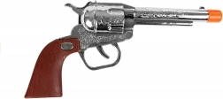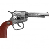 Aspect clasic de revolver, cu detalii atent lucrate și purtare confortabilă datorită tocului cu curea. Revolverul măsoară 19 cm.