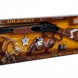 - Pușcă, revolver, stea de șerif, toc pentru revolver cu curea, pinteni (2 buc.)