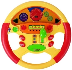 Această jucărie interactivă uimitoare va fi partenerul ideal pentru copilul dvs. în joaca și dezvoltarea de zi cu zi. Copilul își dezvoltă îndemânarea și coordonarea mișcărilor prin apăsarea, prinderea și rotirea elementelor de pe volan. Butoanele colorate pornesc vesele melodii și sunete, susținând creativitatea și curiozitatea copilului. LED-urile atrag atenția și îl fac pe copil să se simtă ca un adevărat șofer.