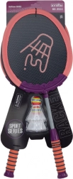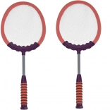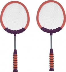 Set de 2 rachete de badminton, ideal pentru iubitorii acestui sport. Paletele sunt realizate din plastic de calitate, într-o nuanță elegantă de roz cu accente mov, ceea ce le conferă un aspect atrăgător. Mânerul paletei este prevăzut cu spumă moale, asigurând o priză comodă și sigură în timpul jocului, iar plasa paletei este realizată dintr-un material care garantează calitate și durabilitate excelente.