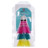 Setul de fluturași de badminton colorați este ideal pentru distracție în aer liber, antrenament și orele de educație fizică. Datorită culorilor puternice, fluturașii sunt excelent vizibili și ușor de găsit chiar și în condiții de lumină mai slabă. Construcția din plastic de calitate garantează o traiectorie de zbor uniformă și un comportament de joc fiabil.