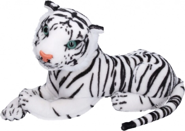 Acest frumos tigru alb de pluș este potrivit pentru copii încă de la naștere, fiind un cadou perfect pentru cei mai mici. Datorită dimensiunii sale compacte, este ușor de transportat. Cu o lungime de 63 cm, lățime de 48 cm și înălțime de 45 cm, este suficient de mare pentru îmbrățișat și joacă.
