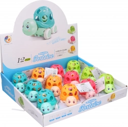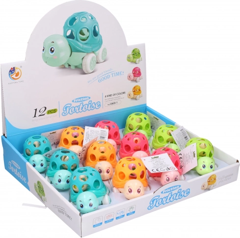 Patru variante de culoare care vor încânta copiii: albastru, portocaliu, verde și roz. Țestoasa este realizată din plastic durabil, ceea ce garantează durată lungă de viață. Datorită mecanismului pe inerție, țestoasa se mișcă ușor pe podea, oferind copiilor un strat suplimentar de distracție.