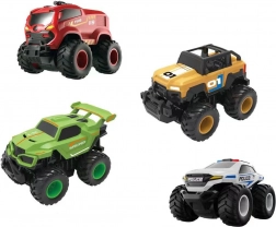 Pornește într-o aventură cu mașina Big Foot de 13 cm. Acest model cu inerție este disponibil în patru variante: pompieri, poliție, verde și galben.