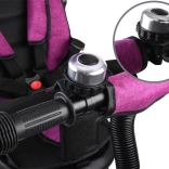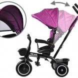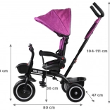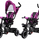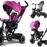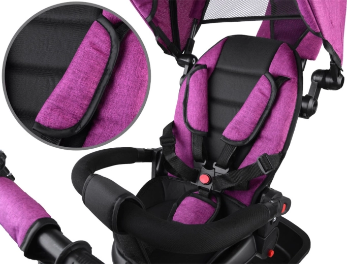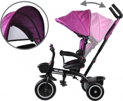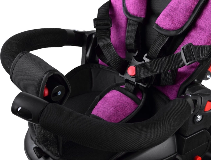 Această tricicletă multifuncțională combină avantajele unui cărucior, ale unei biciclete de împins și ale unei triciclete clasice. Datorită scaunului rotativ, poți plimba copilul atât cu fața către părinte, cât și în sensul de mers. Căptușeala moale, centurile în cinci puncte și bara de siguranță detașabilă oferă confort și siguranță maxime.