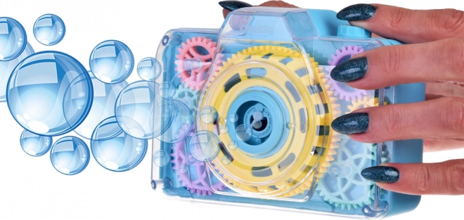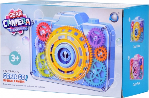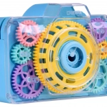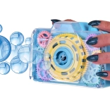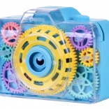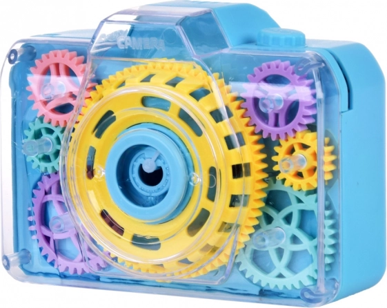 Acest jucăuș aparat foto cu bule transformă fiecare apăsare a declanșatorului într-o mică minune: se aude sunetul aparatului foto, se aprind lumini intermitente și în aer se ridică o ploaie de bule. Datorită capacului transparent, copiii pot vedea cum se rotesc roțile dințate colorate în timpul jocului – ceea ce le stimulează curiozitatea și dezvoltă percepția senzorială.