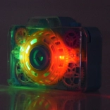 Efectele luminoase intermitente și sunetul de obturator intensifică senzația de fotografiere reală și îi antrenează pe copii în joc.