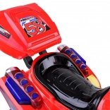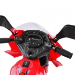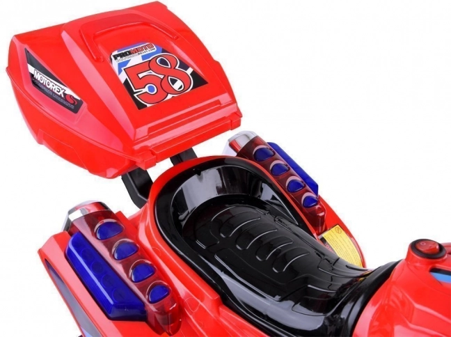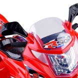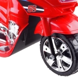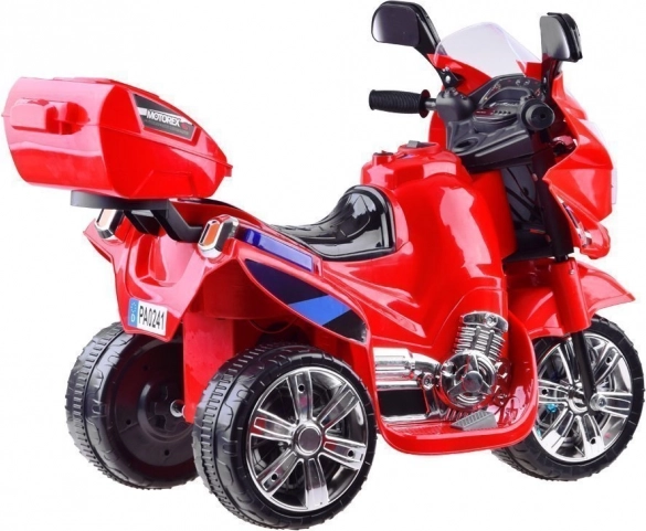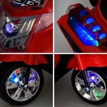 Motocicletă stilată pentru copii, pe baterie, cu iluminare LED colorată în față, pe laterale și în roți, oferă conducere sigură și distractivă atât în interior, cât și în exterior. Datorită frânării electrice la eliberarea accelerației, urcării comode și cutiei din spate practice, este ideală pentru micii piloți care adoră viteza și efectele luminoase.