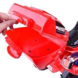 Controlul este simplu: pornire prin ON/OFF cu sunet realist de motor, accelerație la pedală și frână electrică automată la eliberarea pedalei. Copiii vor fi încântați de melodiile vesele, oglinzile laterale, viziera transparentă și cutia pentru mărunțișuri utilă.