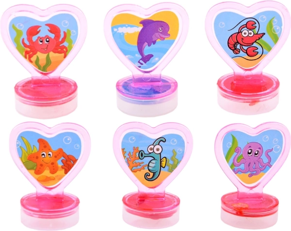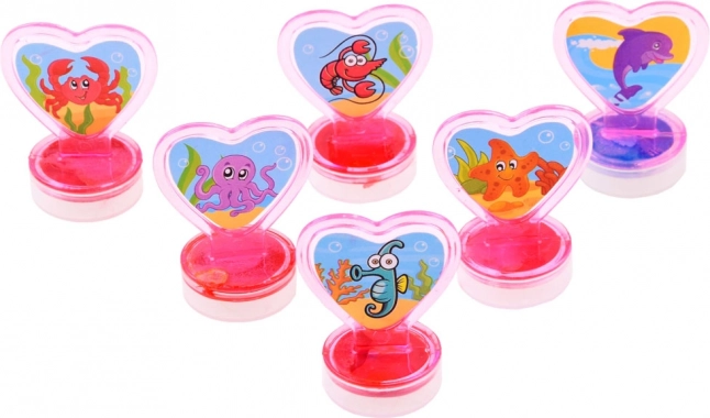 Șase ștampile în formă de inimă într-un ambalaj compact – ideale pentru acasă, grădiniță și călătorii.