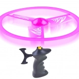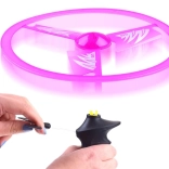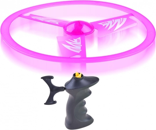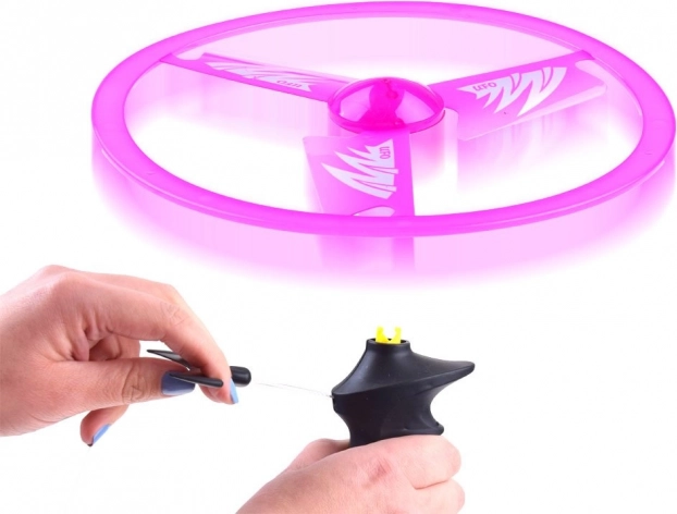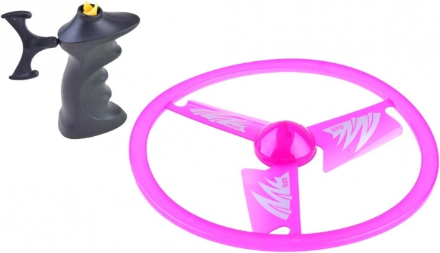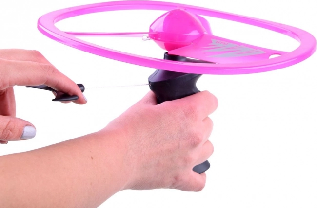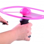 Manevrarea este simplă: fixează discul pe mâner, trage de șnur și urmărește cum „OZN-ul” roz se înalță. Excelent pentru dezvoltarea abilităților de coordonare, a mișcării și a jocului în echipă.