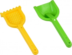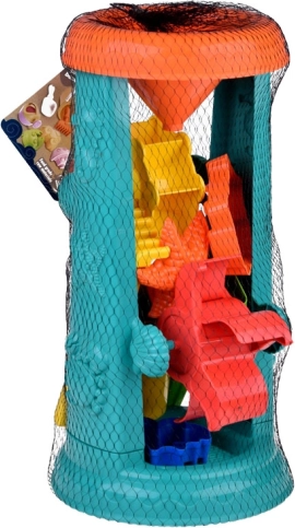 Include greblă, lopățică și forme pentru clădit și creat infinit în nisip.