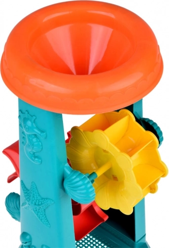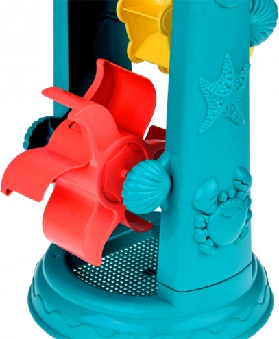Setul de jucării de nisip pentru copii este meticulos proiectat cu motive de viețuitoare marine, precum peștișori și caracatițe. Atracția principală este roata de apă de 37 de centimetri, în care copiii pot turna nisip sau apă și pot observa cum se învârt *roțile duble*. Acest lucru susține dezvoltarea gândirii logice și înțelegerea relațiilor cauză-efect.
