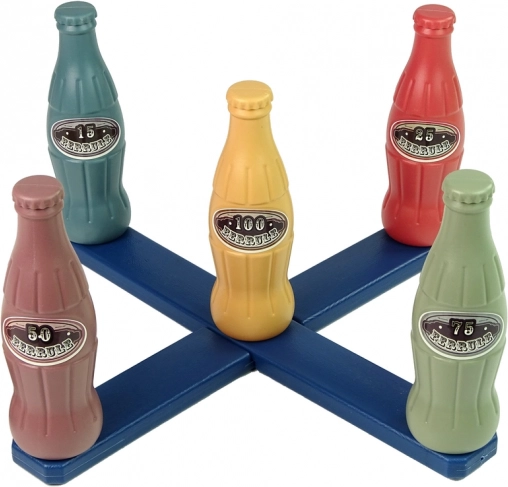 - 2 suporturi din plastic (bază în cruce), 5 sticle cu puncte, 5 inele de aruncat