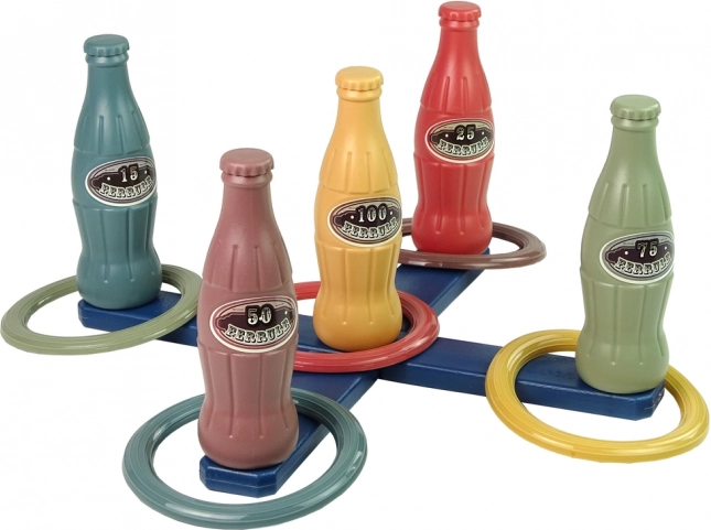Jocul distractiv de aruncat inele pe sticle aduce amuzament activ pentru copii și întreaga familie. Antrenează coordonarea mână-ochi, precizia și concentrarea. Sticlele colorate cu valori de punctaj diferite motivează la competiție sănătoasă și dezvoltă abilitățile într-un mod jucăuș – ideal pentru grădină, parc și plajă.