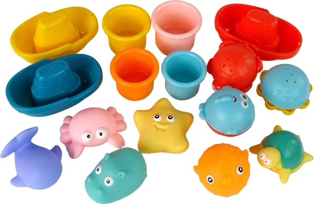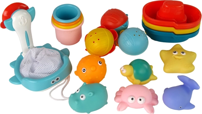 Descoperiți farmecul băii cu un set variat de creaturi marine care transformă fiecare baie într-un joc. Copiii pot prinde animăluțele cu plasa, pot lăsa bărcuțele să plutească la suprafață și pot stropi cu apă din figurinele din cauciuc. Culorile pastel plăcute și formele diverse stimulează imaginația, în timp ce materialul moale este delicat cu mânuțele.