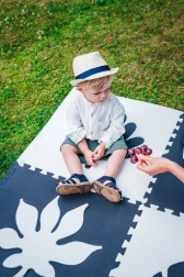 Frunzele mari tridimensionale, care fac parte din puzzle, sunt o jucărie excelentă pentru copil. Când va crește și nu va mai folosi covorașul, îl poți transforma într-un element decorativ cu ajutorul benzii adezive duble.